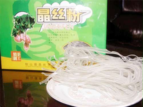 郁山晶丝苕粉是在风景秀丽的武陵山区郁山镇,以无污染土质、无污染水源、无公害的本地优质红薯为原料,传承四百多年的工艺,全程手工制作而成。其纯度为100%,不含任何化学添加剂、防腐剂及有害化学物,是真正的纯天然绿色食品。其色泽晶莹、柔韧度强、入锅后不断裂不浑汤。味鲜柔软、入口滑而不腻;营养价值高,富含多种人体必需的营养物质和微量元数。由于价格合理,食用方便,便于保存等特点,已经成为居家、餐馆和馈赠亲友,老少皆宜的美食佳品。