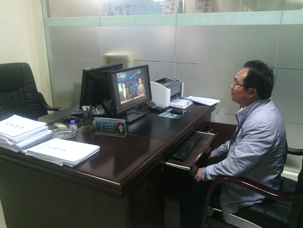 照片:茂云山林场职工正在收看国有林场改革系列报道