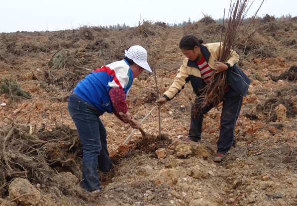照片1:劳务工人正在基地内栽植苗木